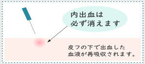 また、まれに内出血と共に患部が硬く腫れたような状態になることがありますが一時的なもので、自然に元の状態に戻りますのでご安心ください。