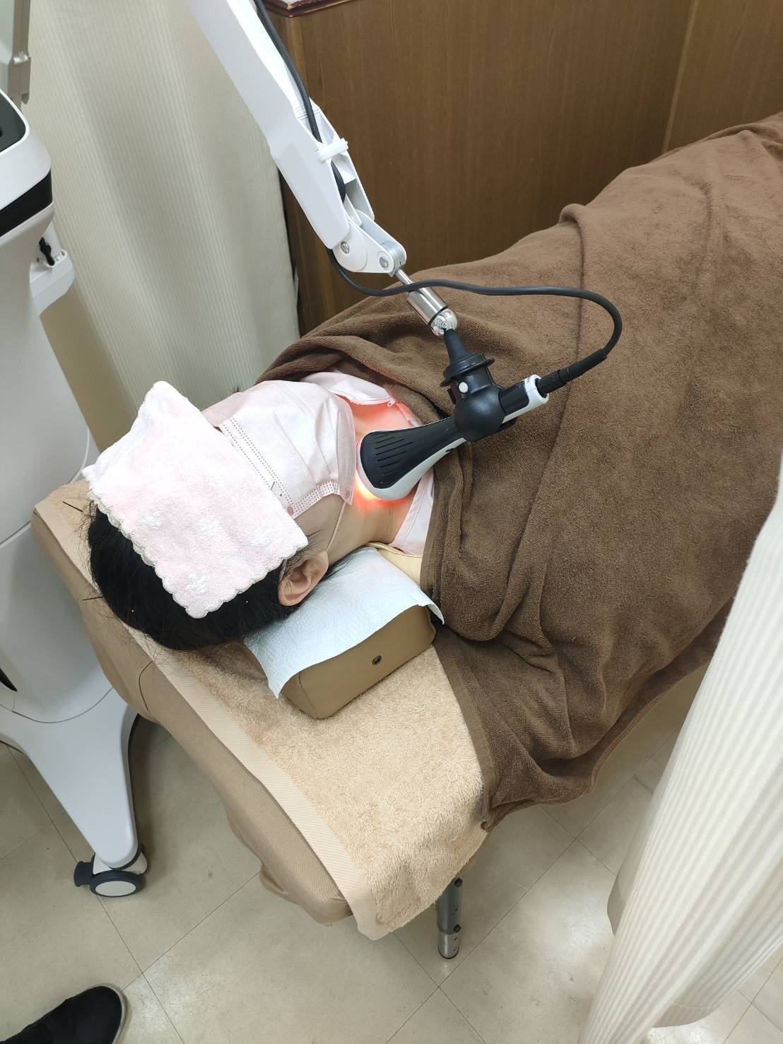 首~肩、背中にかけて一本鍼治療にて筋緊張を改善し、加えてスーパーライザーEX(星状神経節照射)を行うことで自律神経バランスを整え症状の改善を目指します。