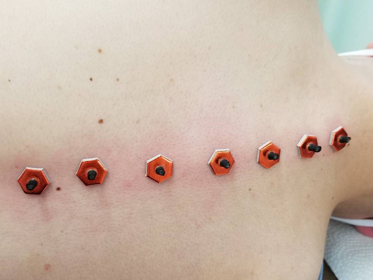 首~肩、背中にかけての一本鍼治療にて筋緊張を改善し、加えて耳周りへの鍼(置鍼)を行いながらスーパーライザーEX(3点に照射➡❶乳様突起❷外耳道❸星状神経節)を行うことで全身の血流を促進させ内耳の機能回復を目指します。