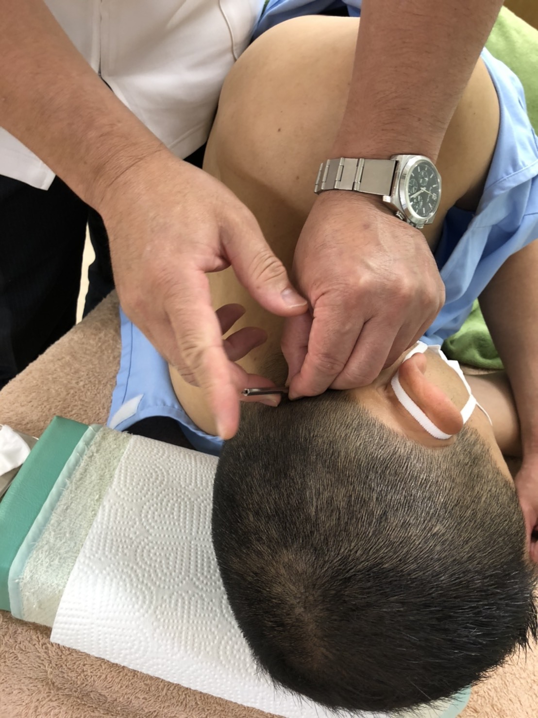 一般的な鍼治療では患者様はうつ伏せ姿勢で(置き鍼)行うことが多いですが「苦しい」「動けないのが苦痛」という声をよく聞きます。