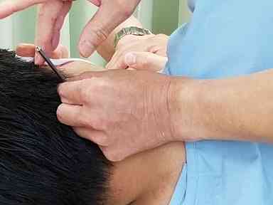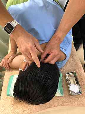 後頭骨の際に沿わせて鍼を刺入していきます。