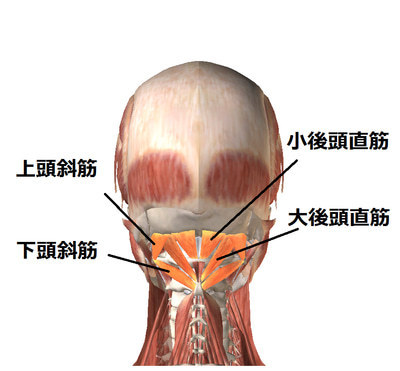その中でも特に後頭下筋群(特に大後頭直筋と小後頭直筋)を緩めることが重要です。