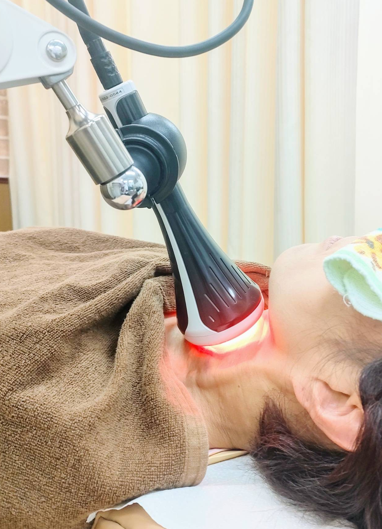 一本鍼治療にて筋緊張を緩和し、さらにこのスーパーライザーEXを用いることで全身の血流が促進されます。