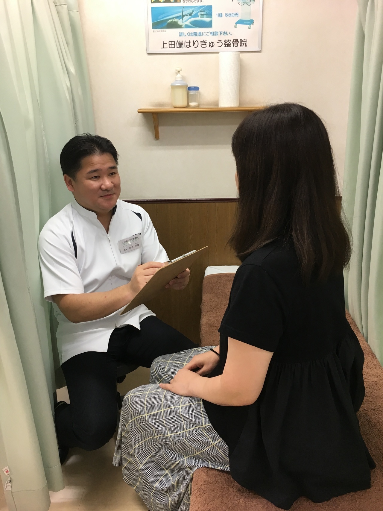 施術中は施術者からお身体の事のご質問をさせて頂いたりすることもございます。また、患者様からも何かご質問があればお気軽にお話ください。